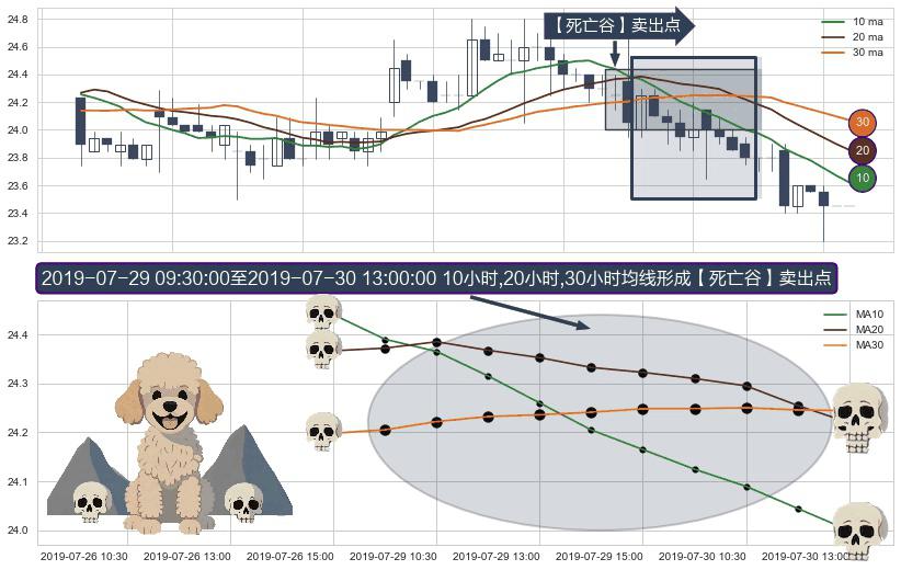 ⚀ 2019-07-29 10:30:00-小时至2019-07-30 13:00:00-小时显现 10小时-20小时-30小时均线 【死亡谷】卖出点 看空信号,后市看跌,卖出