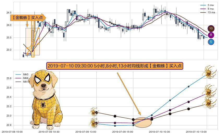 ⚀ 2019-07-10 09:30:00小时显现 5小时-8小时-13小时均线 【金蜘蛛】买入点 看多信号,后市看涨,买入