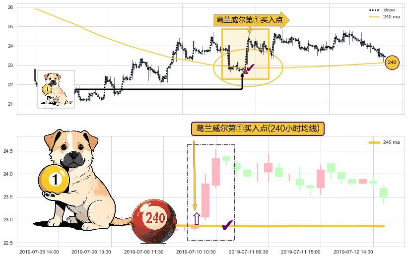 ⚀ 2019-07-09 15:00:00-小时显现 葛兰威尔均线 240小时均线 第买①入点 走势反转见底信号,后市看涨,买进信号