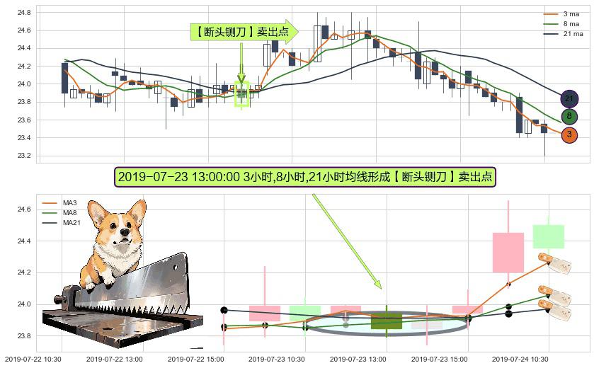 ⚀ 2019-07-23 13:00:00小时显现 3小时-8小时-21小时均线 【断头铡刀】卖出点 看空信号,后市看跌,卖出