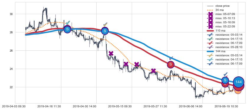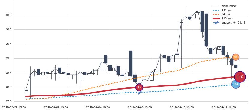 ⚃ 在破位点附近ma走势已有下垂迹象,稍后的走势中ma下降趋势明显,信号【可信度高】