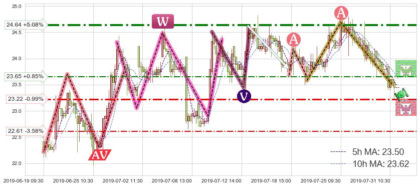 ♘ 支撑价格位23.22,可信任强度56.53%,距离最后交易2019-07-31 15:00形成的收盘价格23.45相差 -0.99%