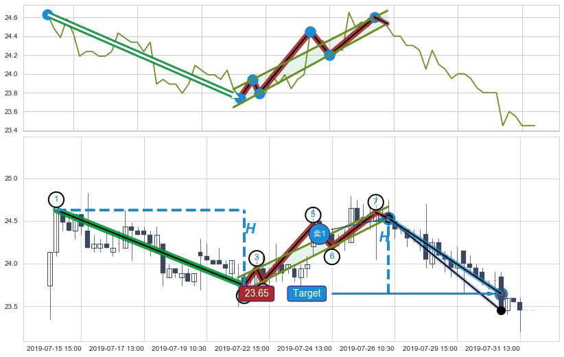 ➣ 最小中继整理跌幅→𝐇: 0.8860 (𝐇旗杆的长度:旗杆起点→顶点)