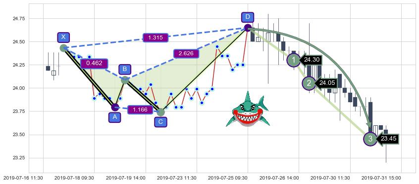 ➣ 已完成【鲨鱼】形态起点X: 07-17:09, 终点D: 07-25:09, 共37交易小时
