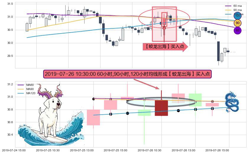 形态多维评估: ⚀ 2019-07-26 10:30:00小时显现 60小时-90小时-120小时均线 【蛟龙出海】买入点 看多信号,后市看涨,买入