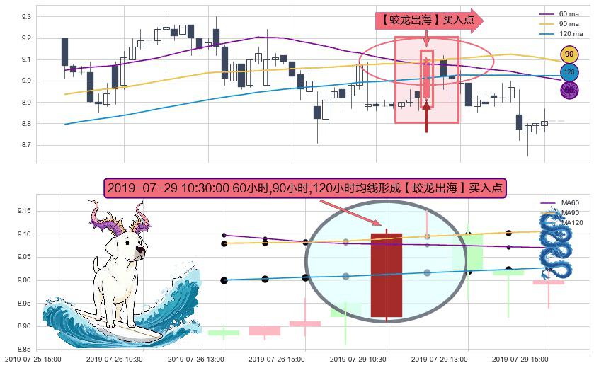 形态多维评估: ⚀ 2019-07-29 10:30:00小时显现 60小时-90小时-120小时均线 【蛟龙出海】买入点 看多信号,后市看涨,买入