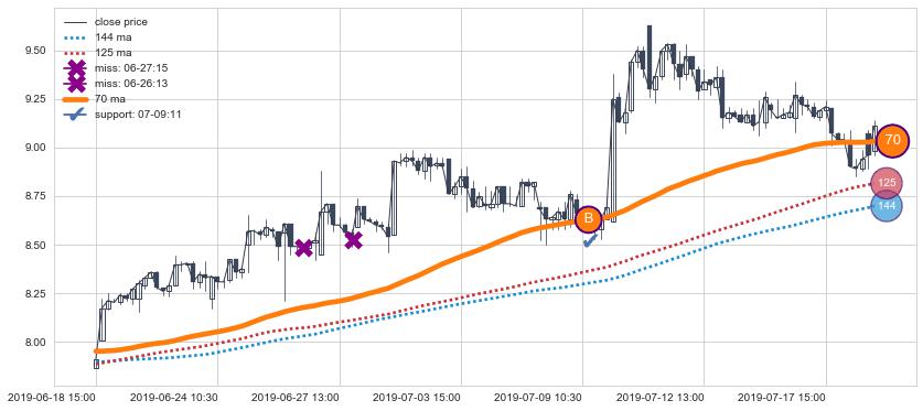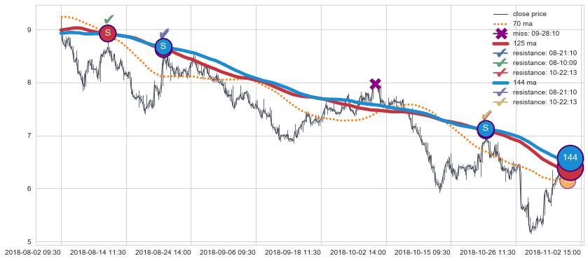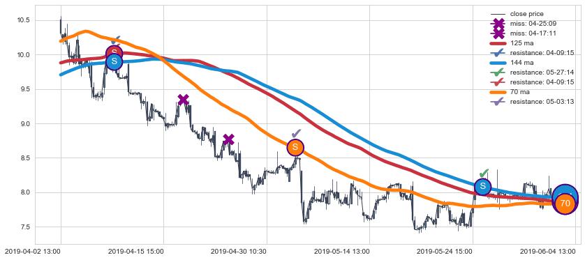 下跌趋势04-02 13:00-06-04 13:00,均线144, 125, 70确认关键阻力3处