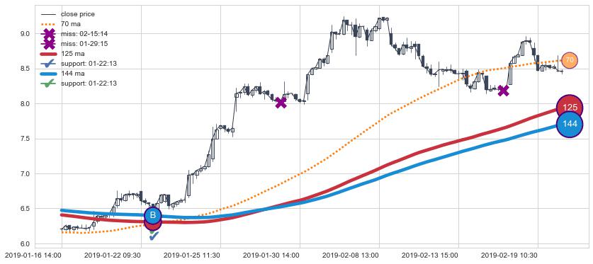 上涨趋势01-16 14:00-02-20 10:30,均线144, 125确认关键支撑1处