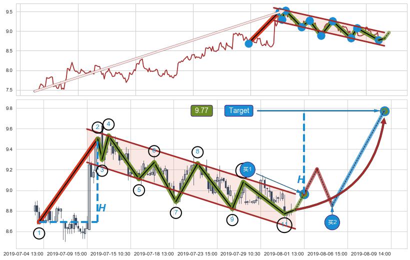 ➢ 【仅预测突破】最后价格:8.81与预测突破价格:8.96→【空间中等】后续最小【整理】第一目标价格→(08-09:14: 9.77 )
