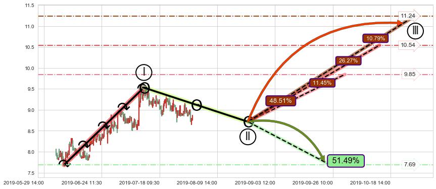 ➢ 循环浪继续向上【最低】位置(10-01:13, 9.85),匹配聚类样本比例23.61%, 可能性概率11.45%
