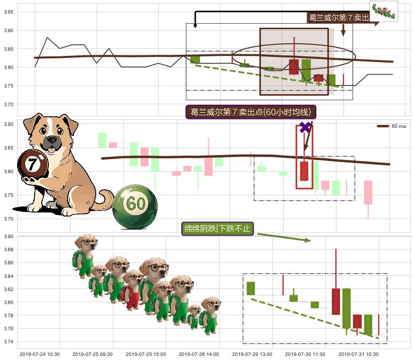 从2019-07-04 13:00至2019-07-24 09:30,共包含82个小时,阶段股价下跌-7.80%,阶段股价变动位移路程比: 1 : 6