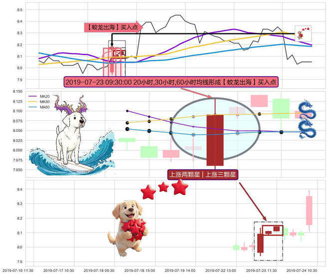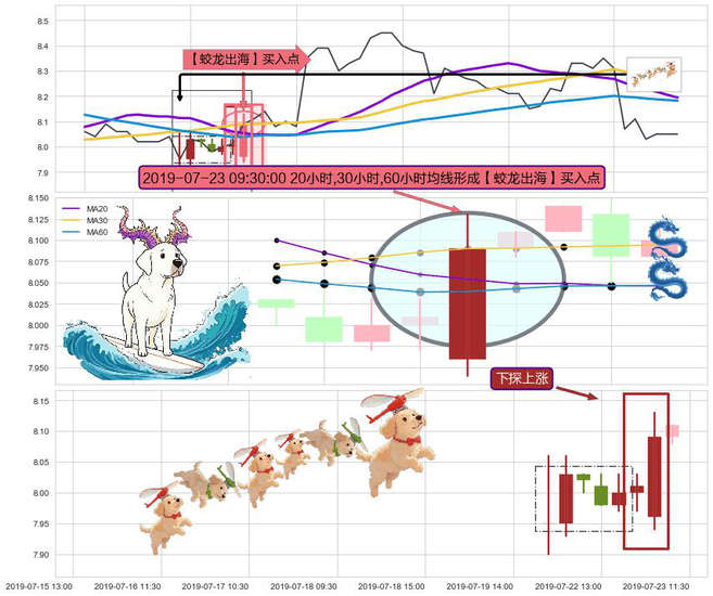 ➣ 2019-07-23 09:30:00小时显现 20小时-30小时-60小时均线 【蛟龙出海】买入点 看多信号,后市看涨,买入