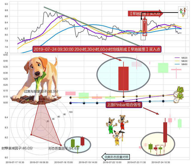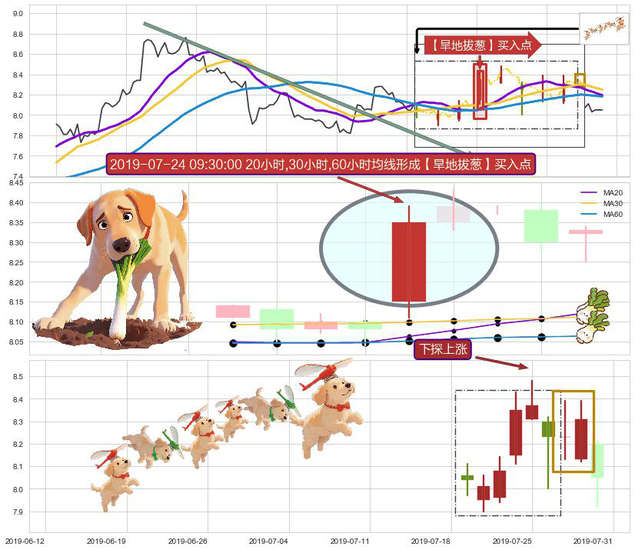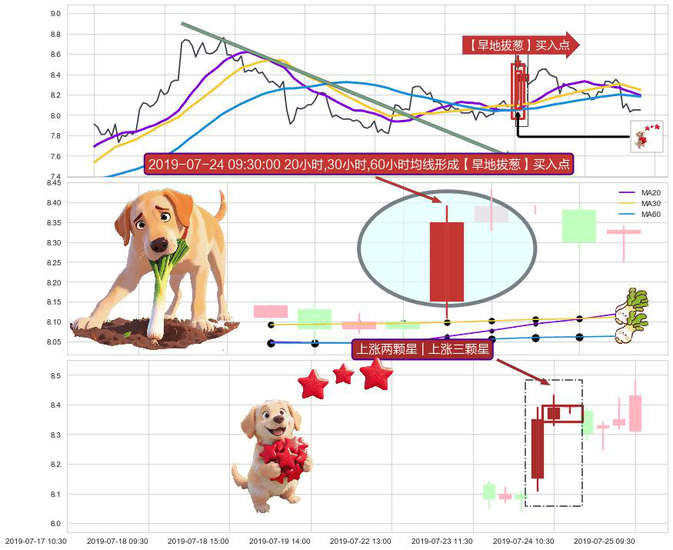 ➣ 2019-07-24 09:30:00小时显现 20小时-30小时-60小时均线 【旱地拔葱】买入点 看多信号,后市看涨,买入