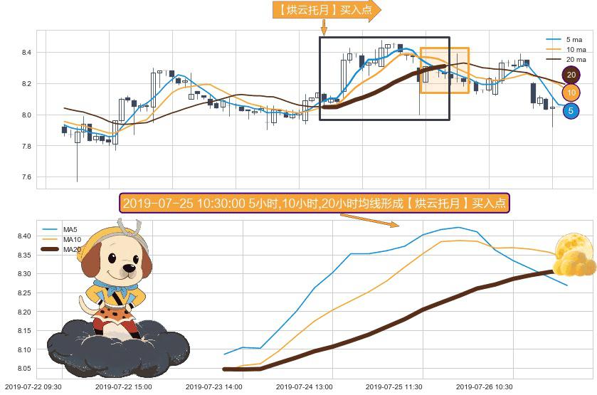 ⚀ 2019-07-23 13:00:00小时-2019-07-26 14:00:00小时显现 5小时-10小时-20小时均线 【烘云托月】买入点 看多信号,后市看涨,买入
