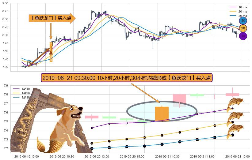 ⚀ 2019-06-21 09:30:00小时显现 10小时-20小时-30小时均线 【鱼跃龙门】买入点 看多信号,后市看涨,买入