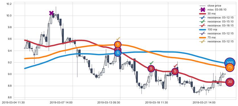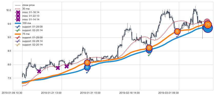 ⚄ 价格在均线获取支撑后再次向上反弹了【极短】距离, 第②买入点 支撑效果【等待验证】
