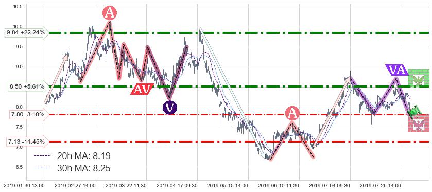 ♞ 20小时均线:8.19,30小时均线:8.25→ 快线<慢线