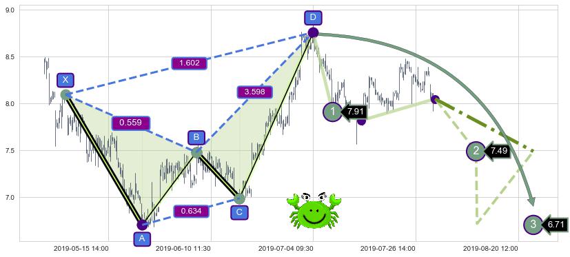 | 2 🅚:绵绵阴跌|下跌不止 ➕ 📡:谐波螃蟹已到达d点:猜想c拉升到达d点后泄力性下沉下跌(均值回复) ☞ 看空信号 ⇥ 【🅚线】交织【图形】⇥ 综合量化分数: 41 | > |