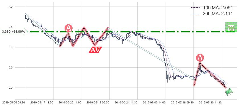 ♘ 阻力价格位3.380,可信任强度85.89%,距离最后交易2019-07-31 15:00形成的收盘价格2.000相差 +68.99%
