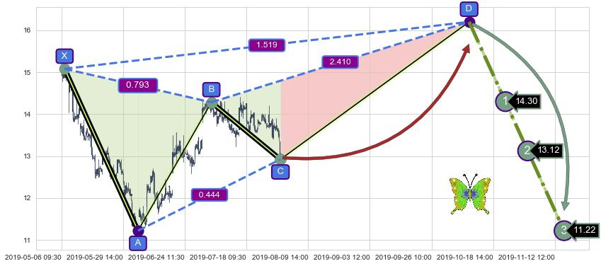 ➣ 未完成【蝴蝶】形态起点X: 05-06:15, 已到达C点: 07-31:10, 预测最终D点: 10-10:11, 共654交易小时