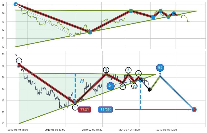 ➣ 【已确认突破】下降【对称】三角形整理 起点:05-06:15,突破点:07-25:11,形态共328交易小时