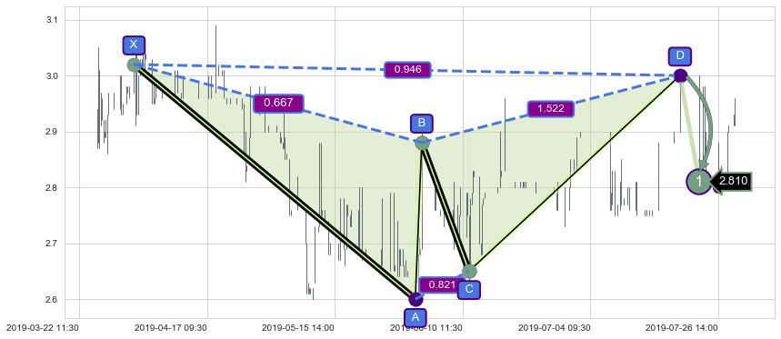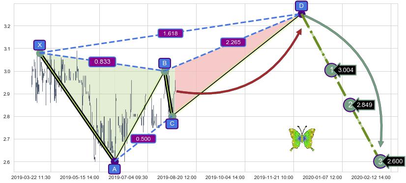 ➣ 未完成【蝴蝶】形态起点X: 03-12:15, 已到达C点: 07-26:14, 预测最终D点: 11-28:13, 共1072交易小时