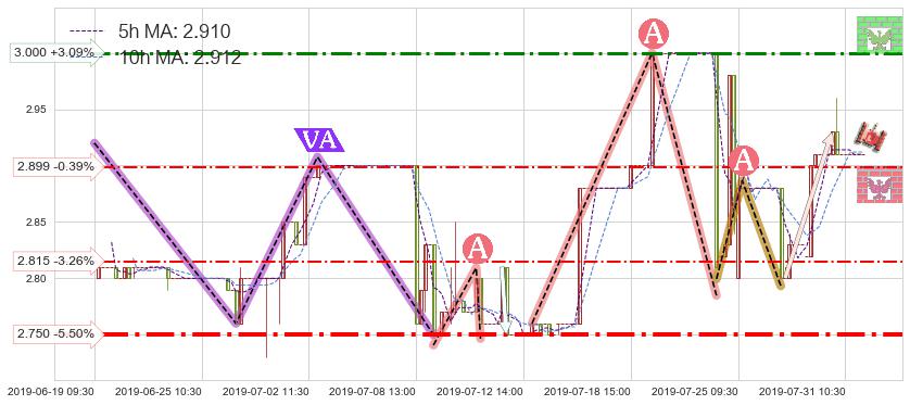 ♘ 阻力价格位3.000,可信任强度55.01%,距离最后交易2019-07-31 15:00形成的收盘价格2.910相差 +3.09%
