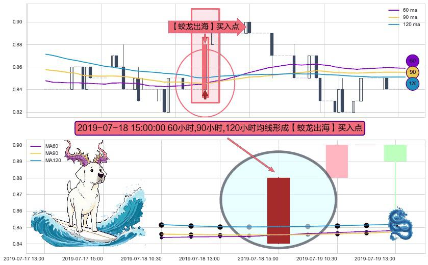 形态多维评估: ⚀ 2019-07-18 15:00:00小时显现 60小时-90小时-120小时均线 【蛟龙出海】买入点 看多信号,后市看涨,买入