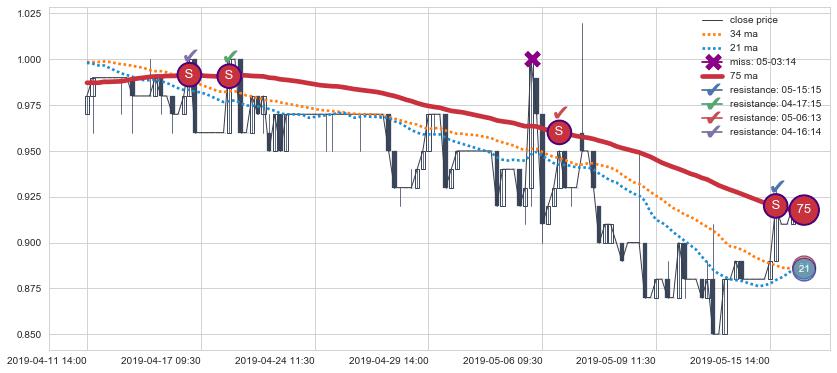下跌趋势04-11 14:00-05-16 11:30,均线75确认关键阻力4处