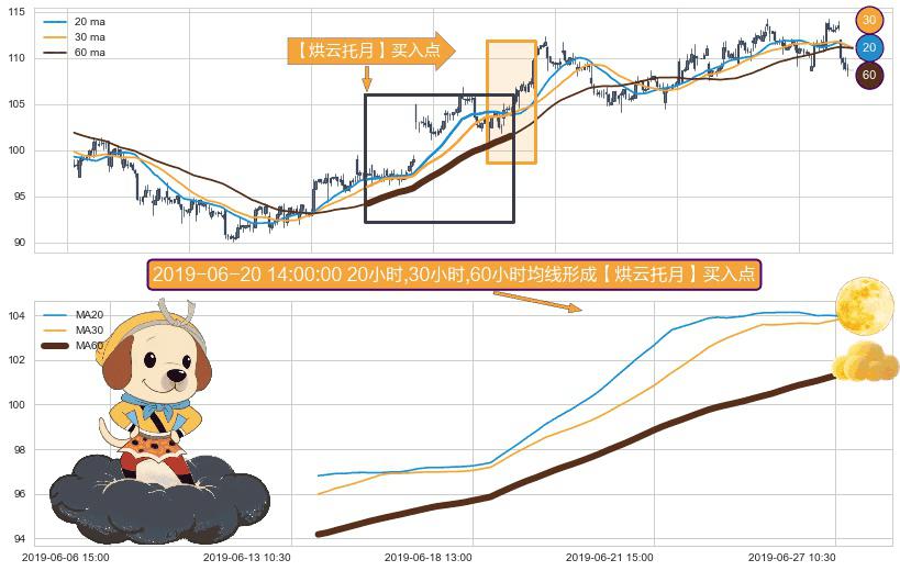 ⚀ 2019-06-13 14:00:00小时-2019-06-27 13:00:00小时显现 20小时-30小时-60小时均线 【烘云托月】买入点 看多信号,后市看涨,买入