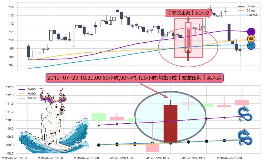 ⚀ 2019-07-29 10:30:00小时显现 60小时-90小时-120小时均线 【蛟龙出海】买入点 看多信号,后市看涨,买入