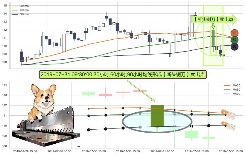 ⚀ 2019-07-31 09:30:00小时显现 30小时-60小时-90小时均线 【断头铡刀】卖出点 看空信号,后市看跌,卖出