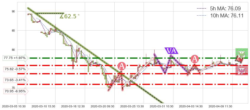 ♘ 支撑价格位75.82,可信任强度82.85%,距离最后交易2020-04-09 15:30形成的收盘价格76.25相差 -0.57%