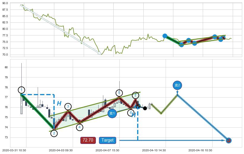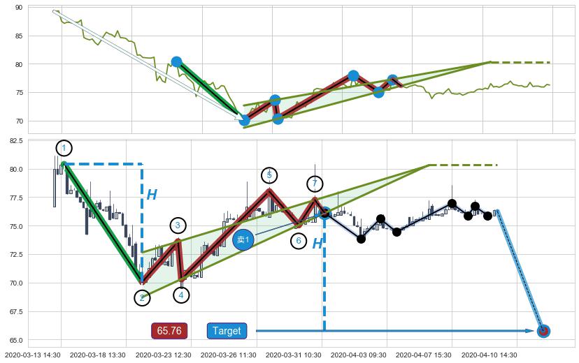 ➣ AI预测: 假定反转启动后, 第❶目标位置(04-14:12, 75.56)