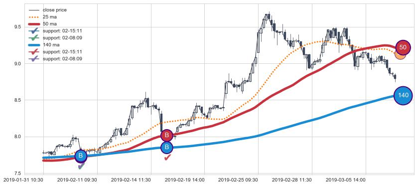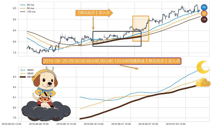 ⚀ 2019-06-13 14:00:00小时-2019-07-05 11:30:00小时显现 60小时-90小时-120小时均线 【烘云托月】买入点 看多信号,后市看涨,买入