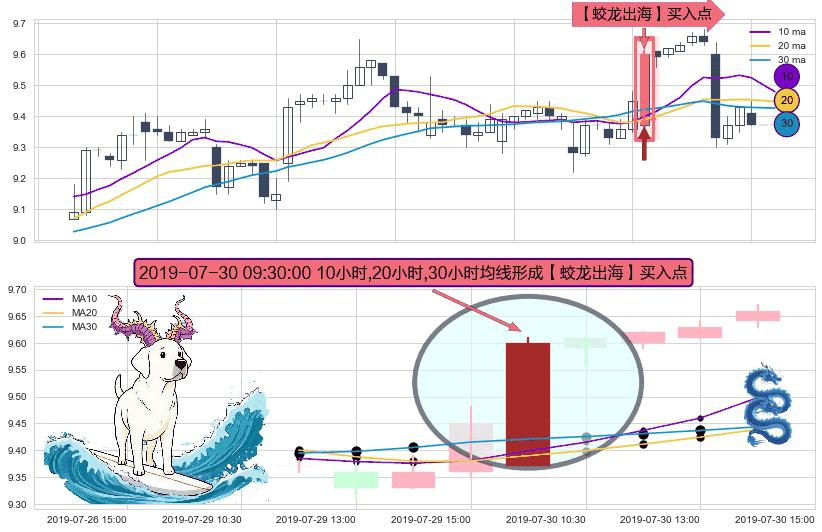 ⚀ 2019-07-30 09:30:00小时显现 10小时-20小时-30小时均线 【蛟龙出海】买入点 看多信号,后市看涨,买入