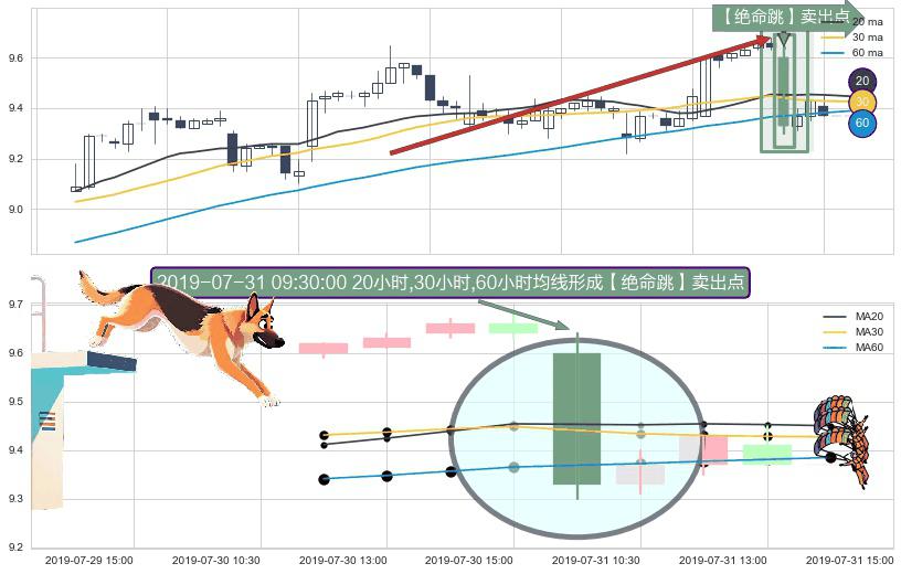 ⚀ 2019-07-31 09:30:00小时显现 20小时-30小时-60小时均线 【绝命跳】卖出点 看空信号,后市看跌,卖出