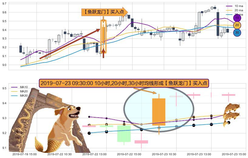 ⚀ 2019-07-23 09:30:00小时显现 10小时-20小时-30小时均线 【鱼跃龙门】买入点 看多信号,后市看涨,买入