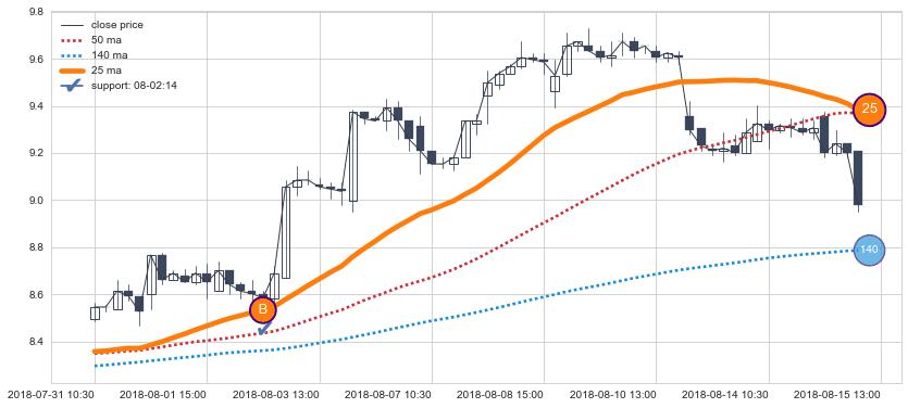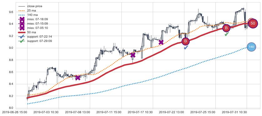 ⚂ 2019-06-14 10:30:00-小时均线向下破位,2019-06-19 09:30:00-小时重新上穿突破均线,均线支撑再次生效
