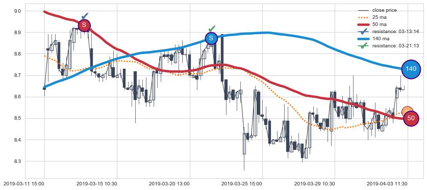 ⚂ 2019-07-30 09:30:00小时突然冒出一根大阳线,一下子顶穿三条均线且收盘价收在各条均线之上