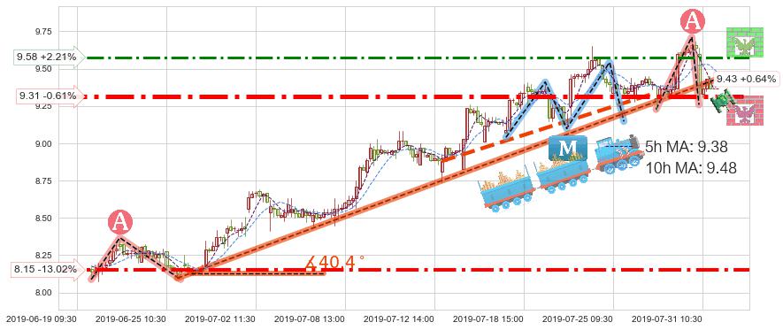 ♞ 5小时均线:9.38,10小时均线:9.48→ 快线<慢线
