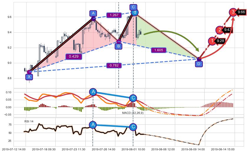 ➣ 未完成【赛福】形态起点X: 07-15:09, 已到达C点: 07-30:14, 预测最终D点: 08-09:10, 共110交易小时