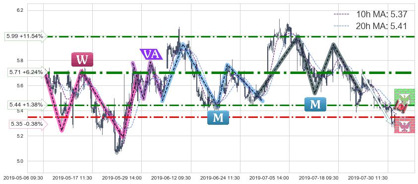 ♘ 支撑价格位5.35,可信任强度57.74%,距离最后交易2019-07-31 15:00形成的收盘价格5.37相差 -0.38%