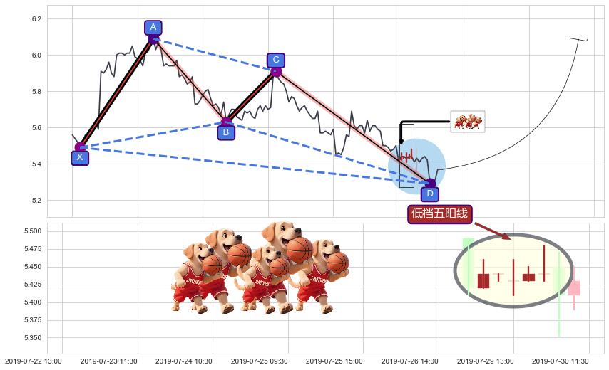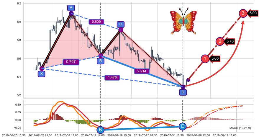 ➣ 已完成【蝴蝶】形态起点X: 06-27:14, 终点D: 07-31:09, 共135交易小时