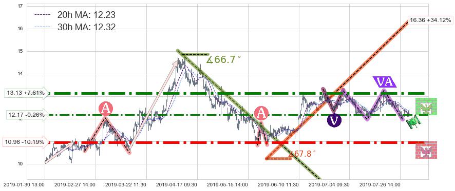 ♘ 阻力价格位12.17,可信任强度60.40%,距离最后交易2019-07-31 15:00形成的收盘价格12.20相差 -0.26%