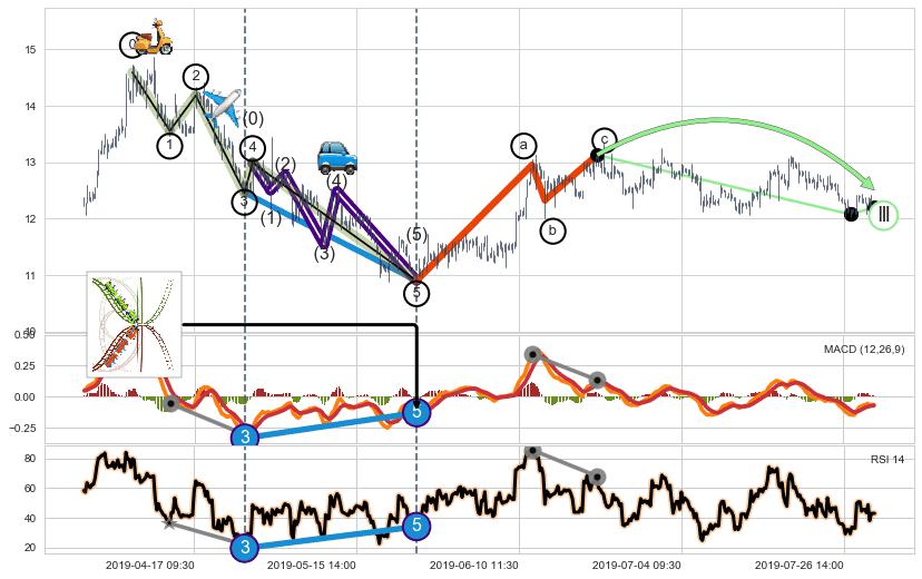 ➣ a,c调整浪RSI走势未出现明显背离