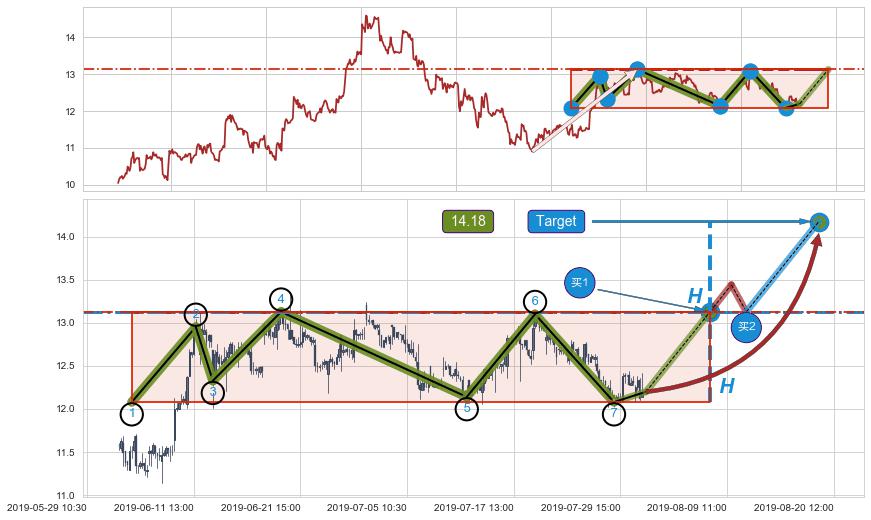 ♘ 阻力价格位13.13,可信任强度93.72%,距离最后交易2019-07-31 15:00形成的收盘价格12.20相差 +7.61%