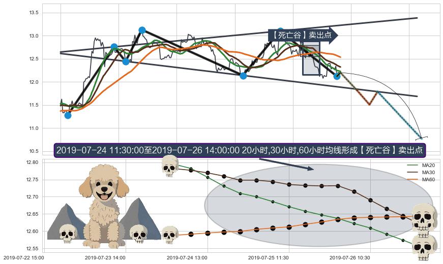 | 2 🅚:下跌两颗星 | 下跌三颗星 ➕ 🎢:【死亡谷】卖出点均线组合卖出点信号形成后,猜想后续破位下跌,沿着向下的尖头三角下跌 ☞ 看空信号 ⇥ 【均线】交织【🅚线】⇥ 综合量化分数: 40 | > |
