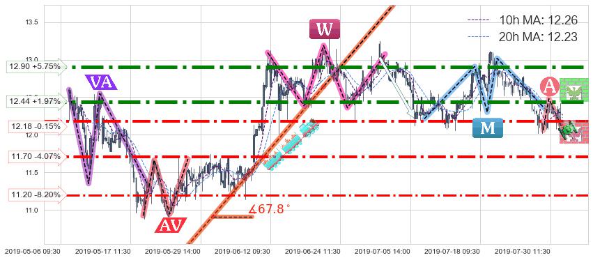 ♘ 阻力价格位12.44,可信任强度86.78%,距离最后交易2019-07-31 15:00形成的收盘价格12.20相差 +1.97%
