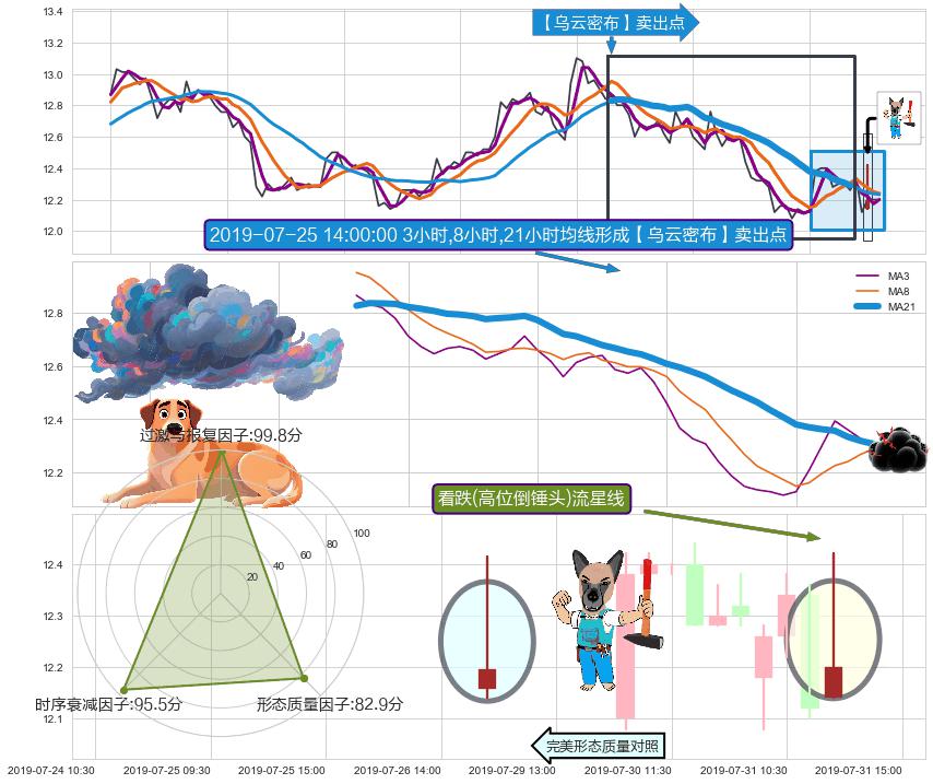 从2019-07-08 10:30至2019-07-11 15:00,共包含23个小时,阶段股价下跌-0.62%,阶段股价变动位移路程比: 1 : 13
